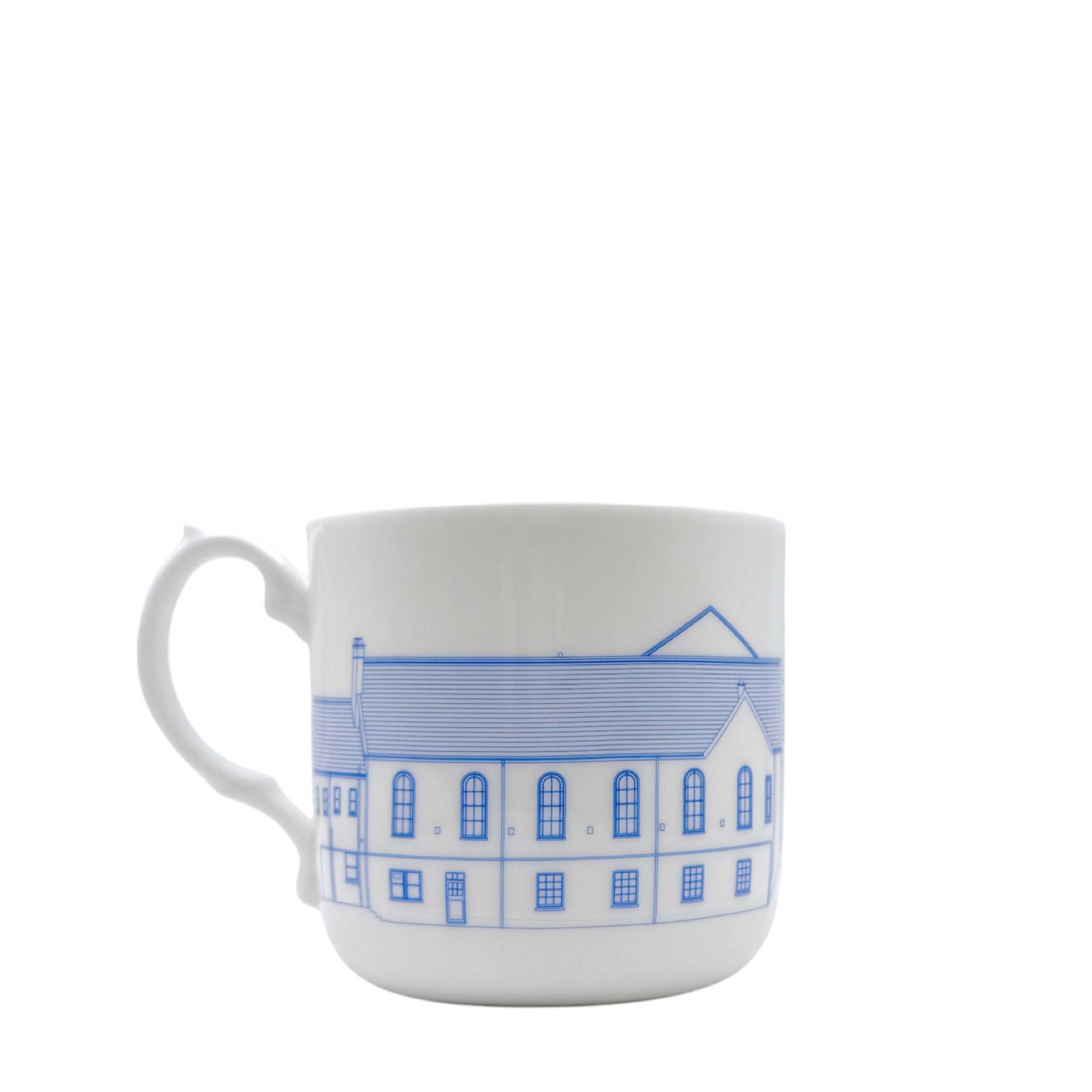 Crisp and classic, this limited edition Capel Salem mug pairs cobalt blue with a white handle for a look that nods to the great British tradition of blue-and-white ceramic design – reimagined here through the lens of Keith Brymer Jones and the story of Capel Salem. The detailed chapel illustration wraps around the fine bone china body in rich cobalt blue, capturing the architectural character of the building in every line. It is a design rooted in place, in history, and in craft. The mug was made in collaboration with Duchess China 1888, based in Stoke-on-Trent and one of the oldest fine bone china manufacturers remaining in the UK. Their fully UK-made production process and generations of skilled craftsmanship are what make pieces like this possible. Every purchase contributes to the restoration of Capel Salem’s original windows – part of a long-term effort to make the building a lasting cultural asset for the people of Pwllheli and beyond. 290ml capacity. Dishwasher safe. Backstamped with Duchess China’s mark of British-made authenticity. Clicking to purchase will take you through to the Duchess China website to complete your order.