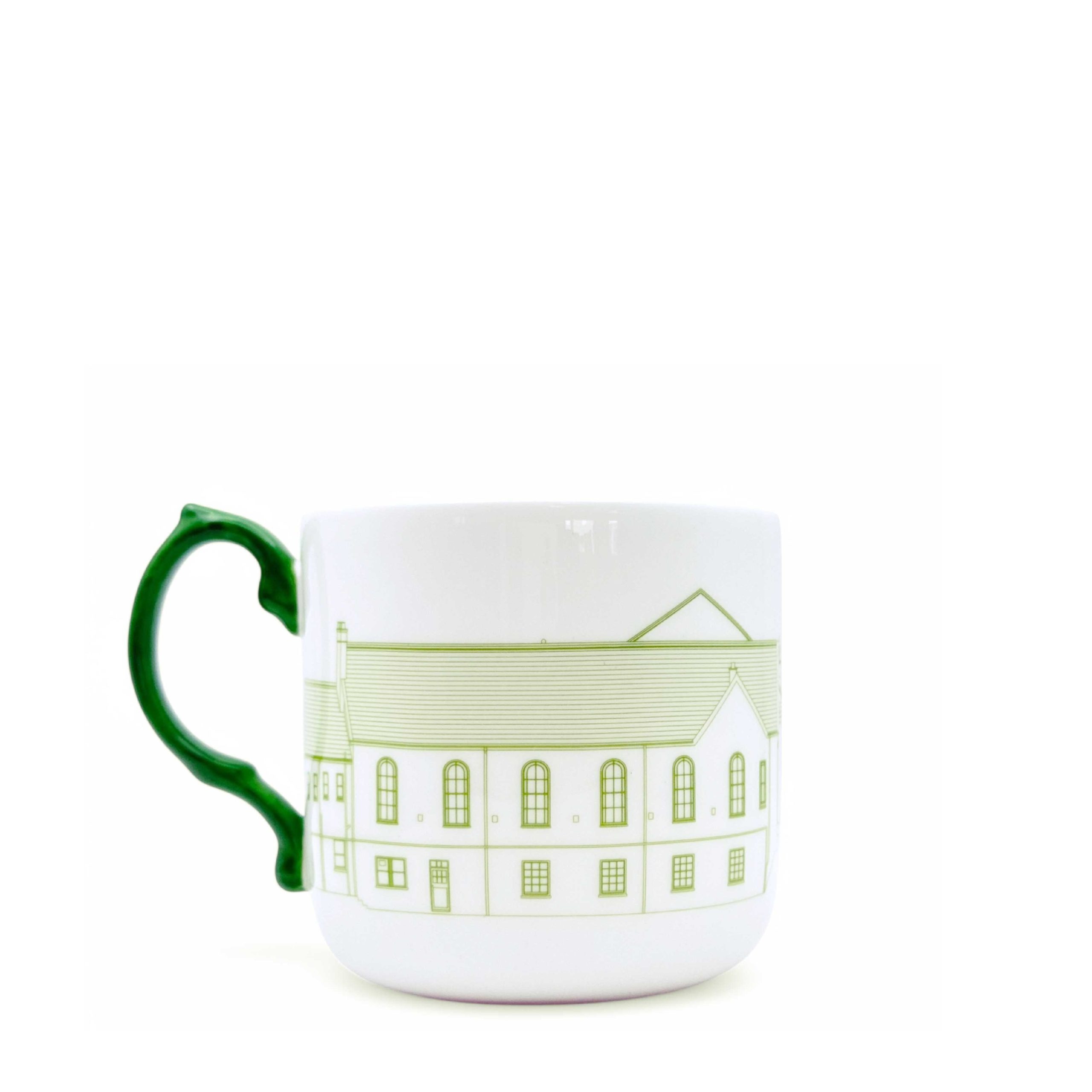 There is something quietly joyful about this mug – the way the green illustration and hand-painted green handle come together to create something cohesive, warm, and undeniably well-made. The Capel Salem chapel is depicted in full detail across the fine bone china body, and the tonal handle ties the design together into a piece that feels complete. It is part of a limited collection designed by Keith Brymer Jones in collaboration with Duchess China 1888, the Stoke-on-Trent based fine bone china manufacturer with over 135 years of British heritage. Keith has spoken openly about how much this partnership means to him – the opportunity to work with one of the last remaining fine bone china factories in the UK, and to use that craftsmanship in service of something real. Every mug sold contributes to the restoration of Capel Salem’s historic windows, bringing the chapel one step closer to being fully open and shared with the community of Pwllheli and beyond. These are not mass-produced pieces. They are made in the UK, backstamped as a mark of that authenticity, and limited in number. 290ml capacity. Not dishwasher safe. Backstamped with Duchess China’s mark of British-made authenticity. Clicking to purchase will take you through to the Duchess China website to complete your order.